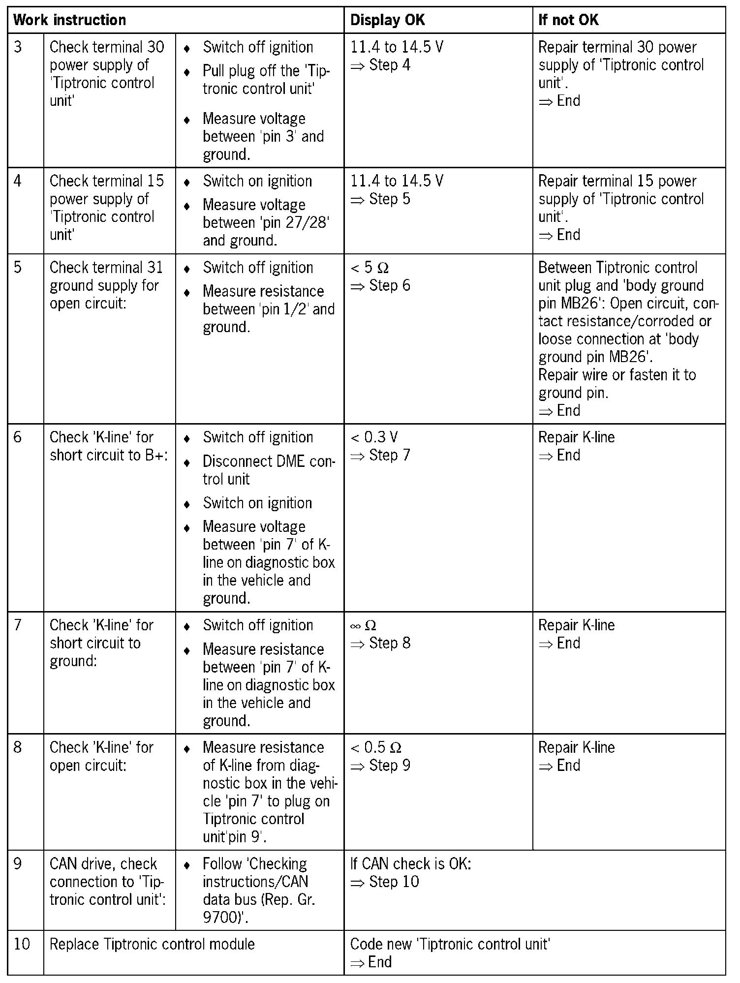 - 'K-line' to 'Tiptronic control unit' faulty