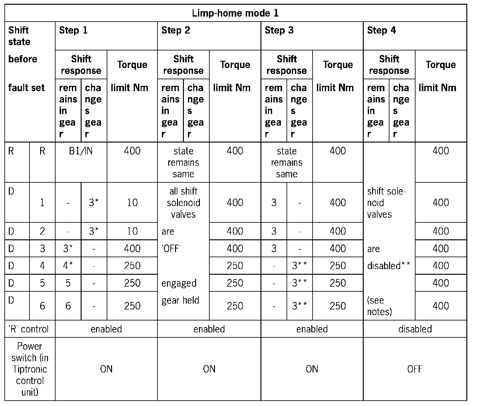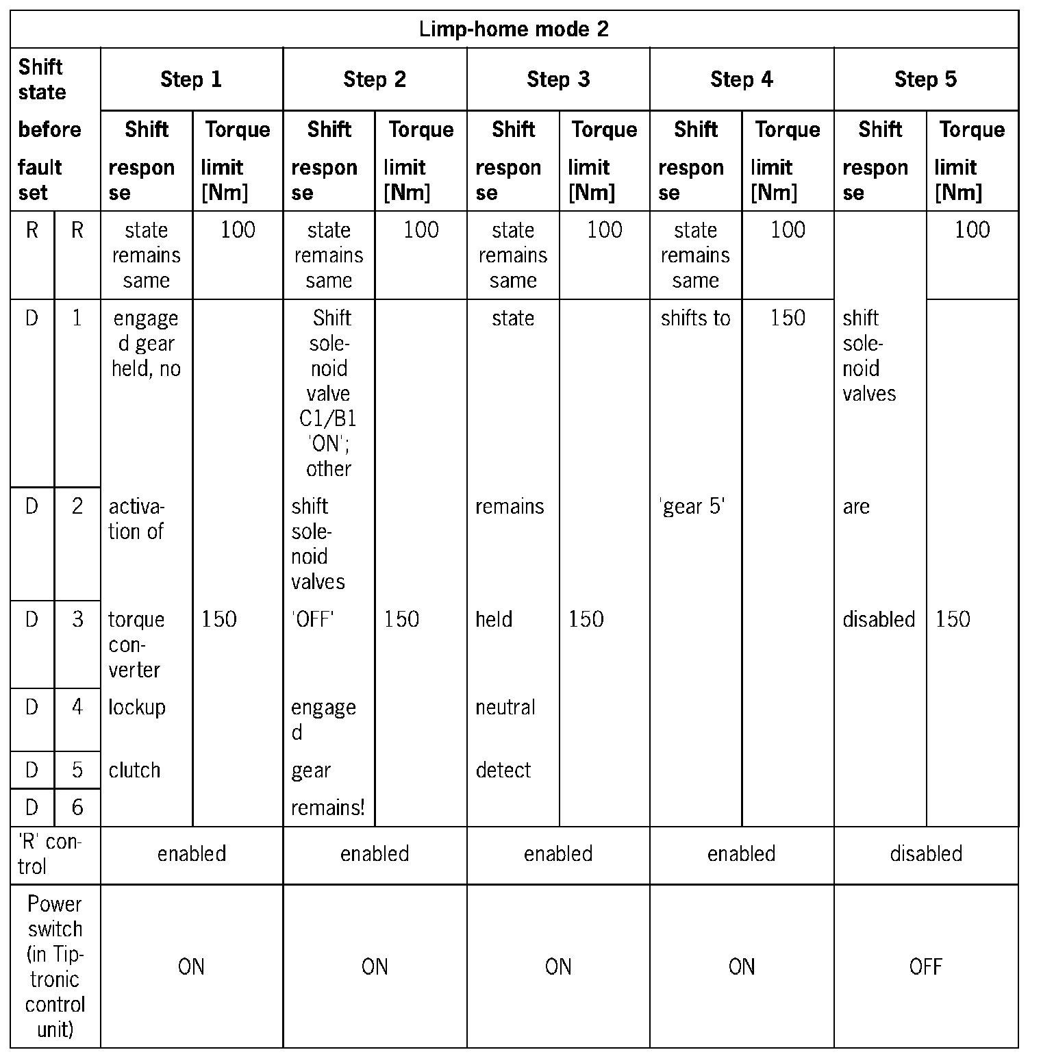 - Step 1: After a fault occurs and is set, the Tiptronic control unit switches to limp-home mode and initiates the appropriate shift operation.