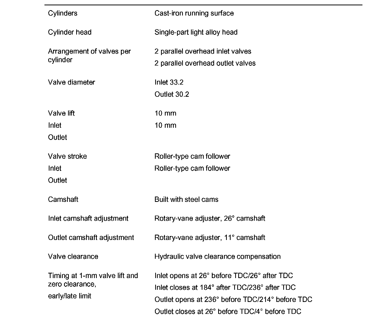 Technical data for BFD engine (Cayenne)