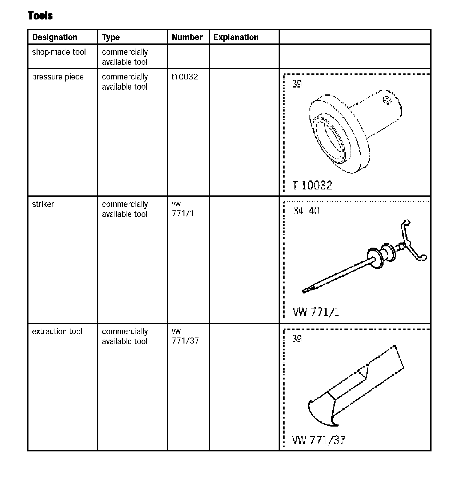 2. Remove sealing ring with special tool striker vw 771 / 1 and extraction tool vw 771/ 37 attachment.