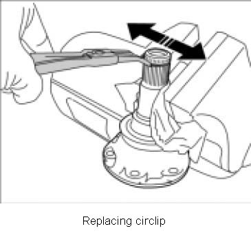 2. Replace circlip on end of long flanged shaft.