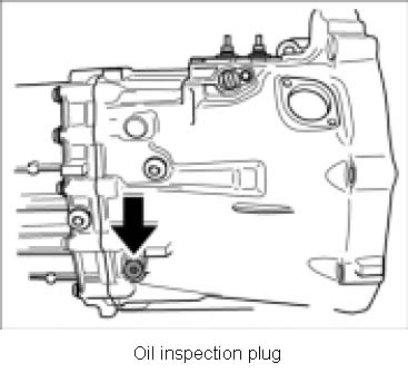 6. Screw in oil inspection plug -arrow- with new sealing ring. Tightening torque: 26 ftlb.
