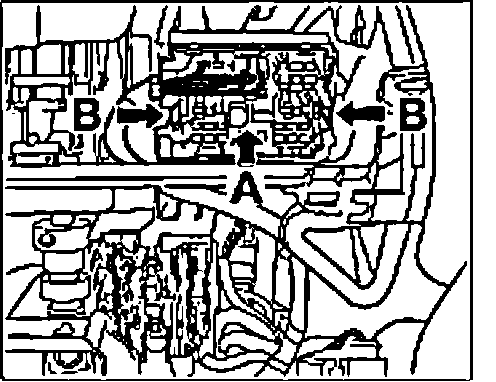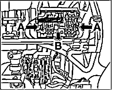 2. Press the relay carrier into the holder "arrow A" until you feel the locking tabs "B" engage.