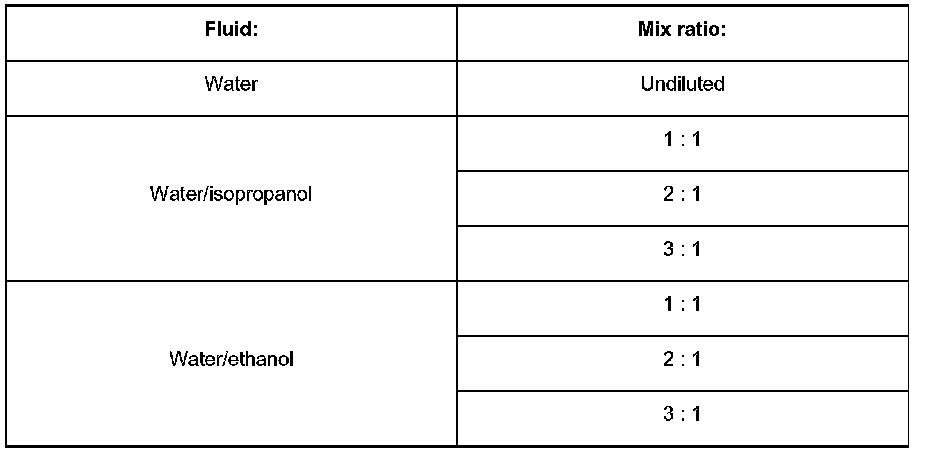 Mix Ratio of Fluids For Windscreen Washer System