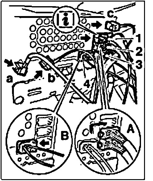 5. Disconnect plugs "1, 2, 3, 4" in sequence "A" and "B".