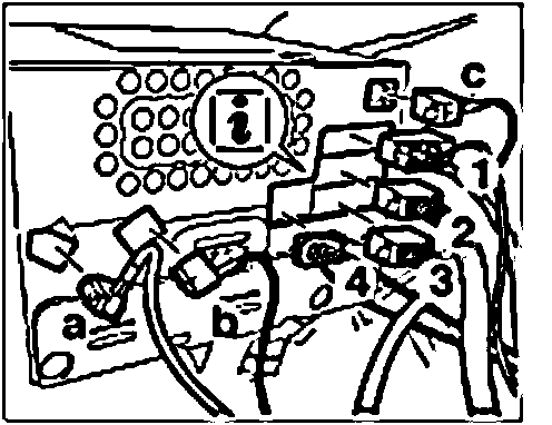 4. Press lock "arrow" of antenna plugs "a, b, c" and pull off antenna line.