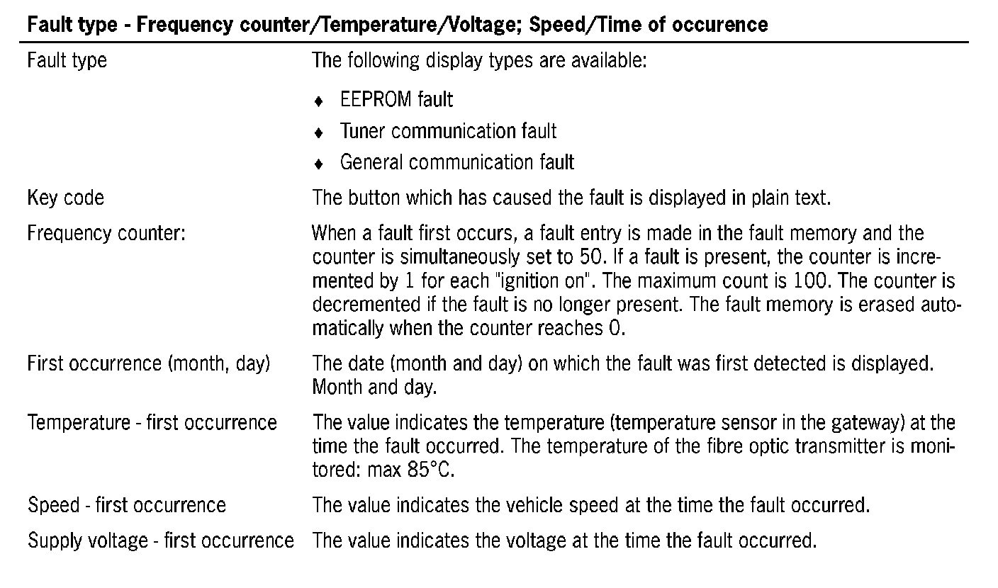 If there is a fault code in one of the MOST control modules, the display '*' is only shown in the 'PCM2 MMI function selection menu'.