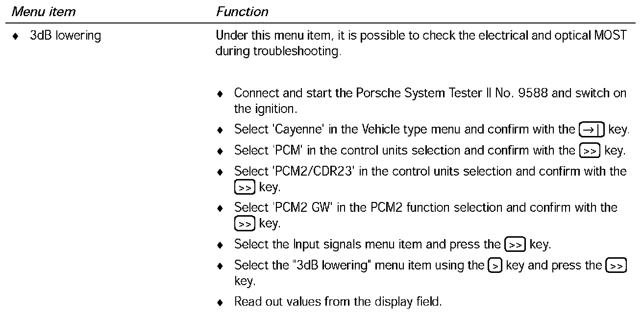 Deactivate the 'automatic traffic announcement' before performing the diagnosis on the PCM2. If this is not done, the diagnosis will abort.