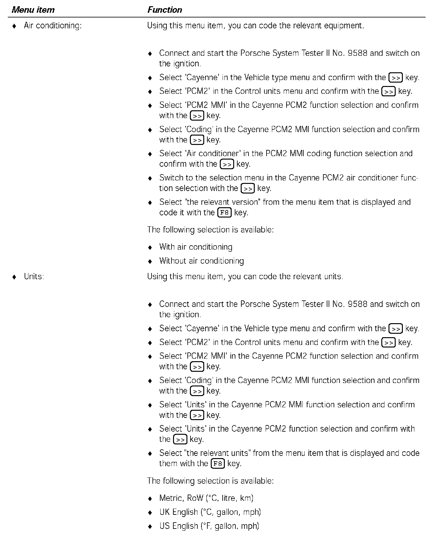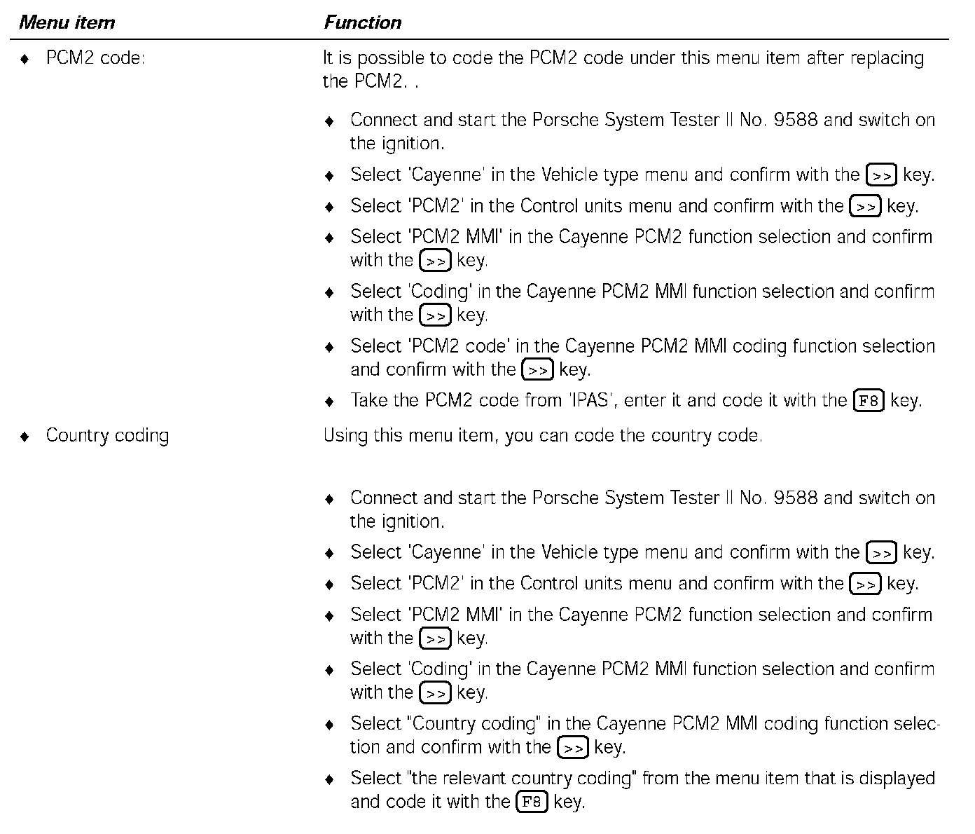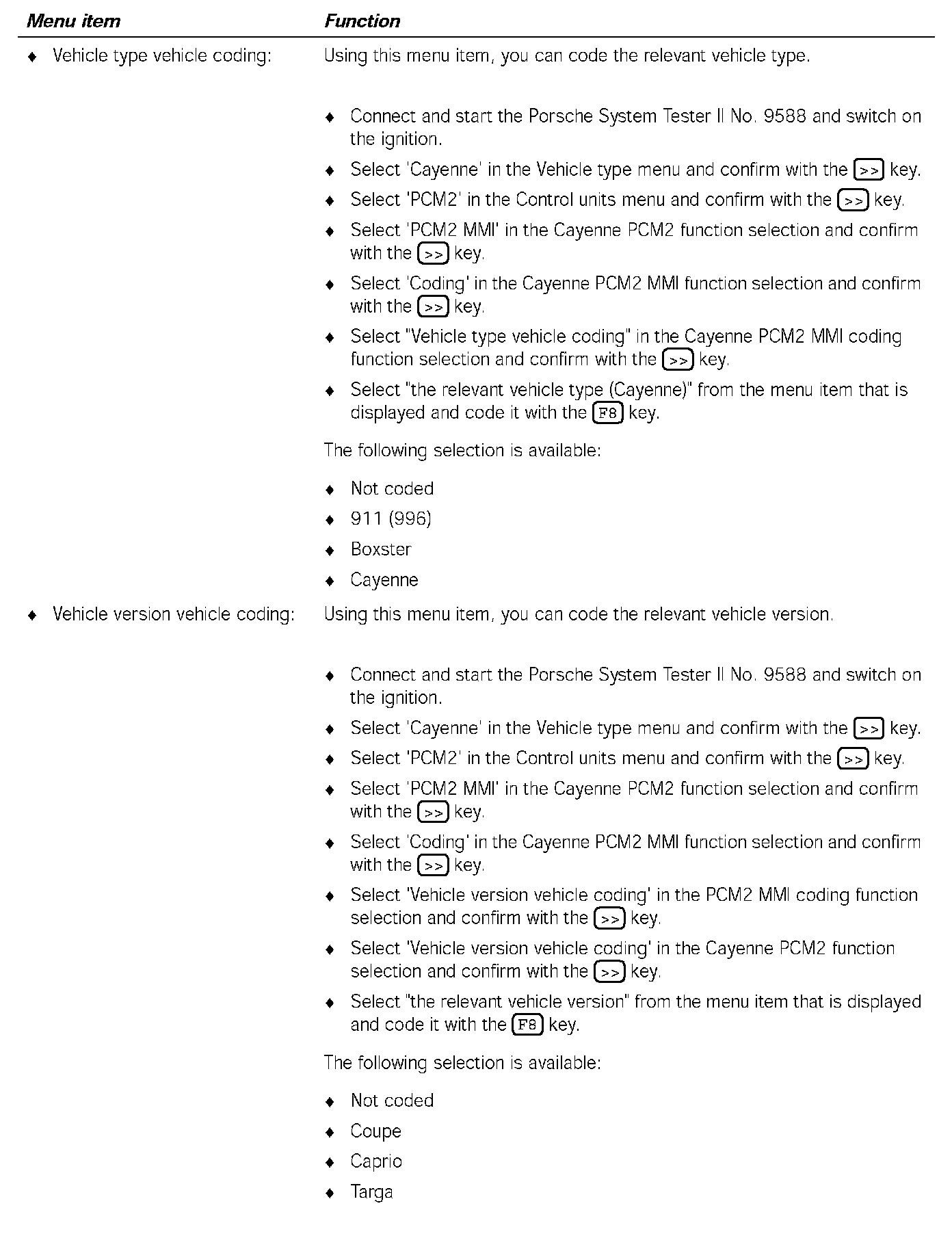 4. Select 'Identification' in the Cayenne PCM2 function selection and confirm with the [>>] key.