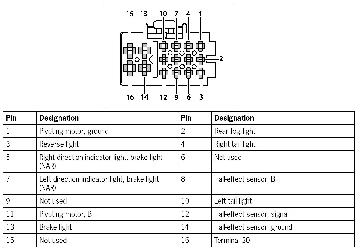 Plug B, wiring harness of trailer hitch control unit