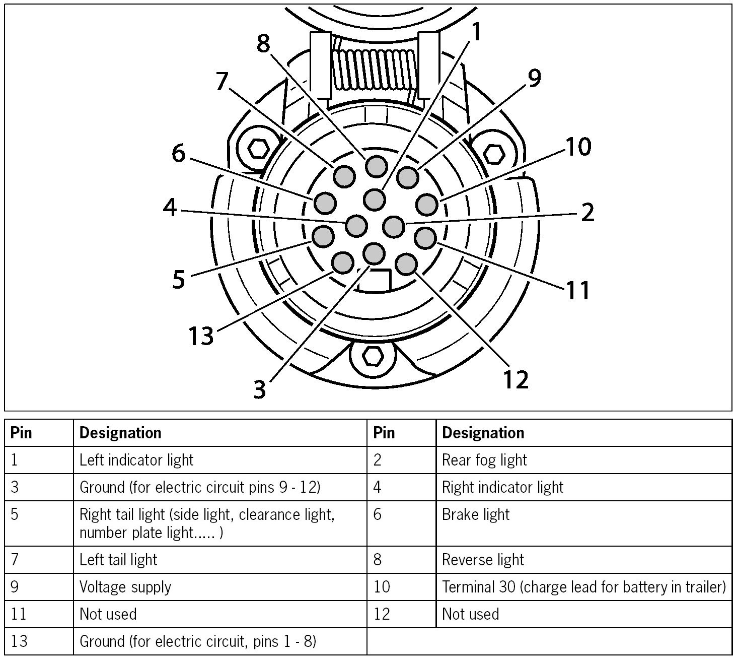 Trailer socket, 13-pin
