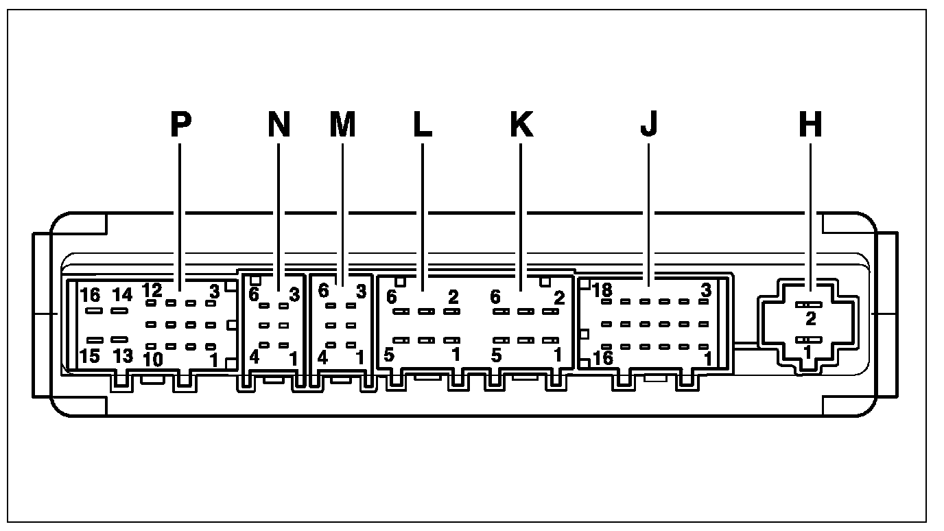Connector P, 16-pin (only assigned for belt height and steering column adjustment)