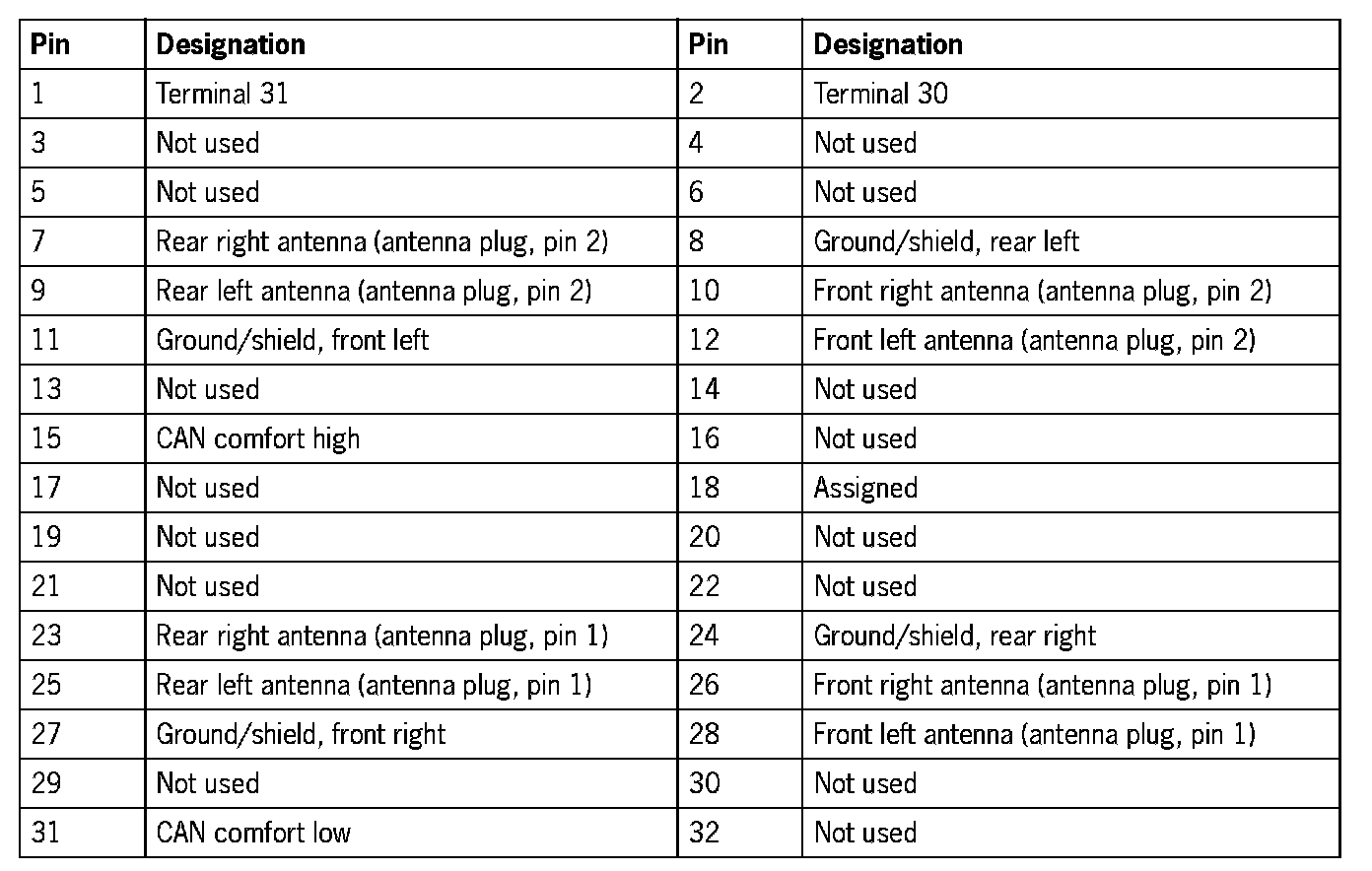 Plug for tyre pressure monitoring control module, 32-pin