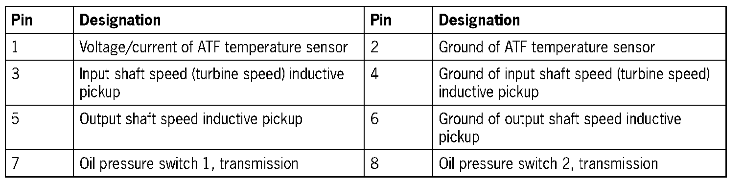 Socket for solenoids (transmission side) 'A', '14-pin' and sensors (transmission side) 'B', '8-pin'