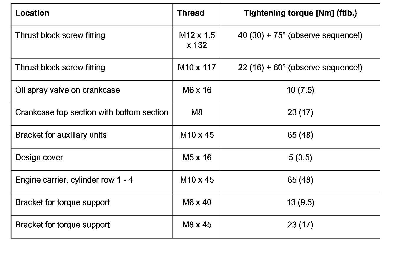 Tightening Torques
