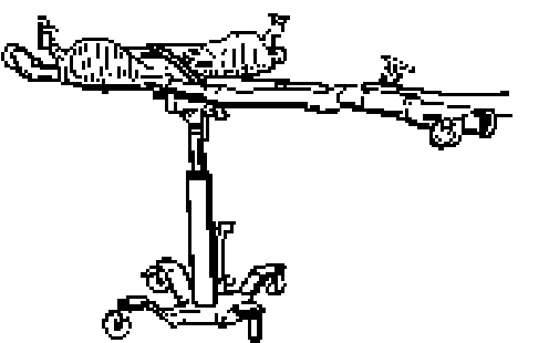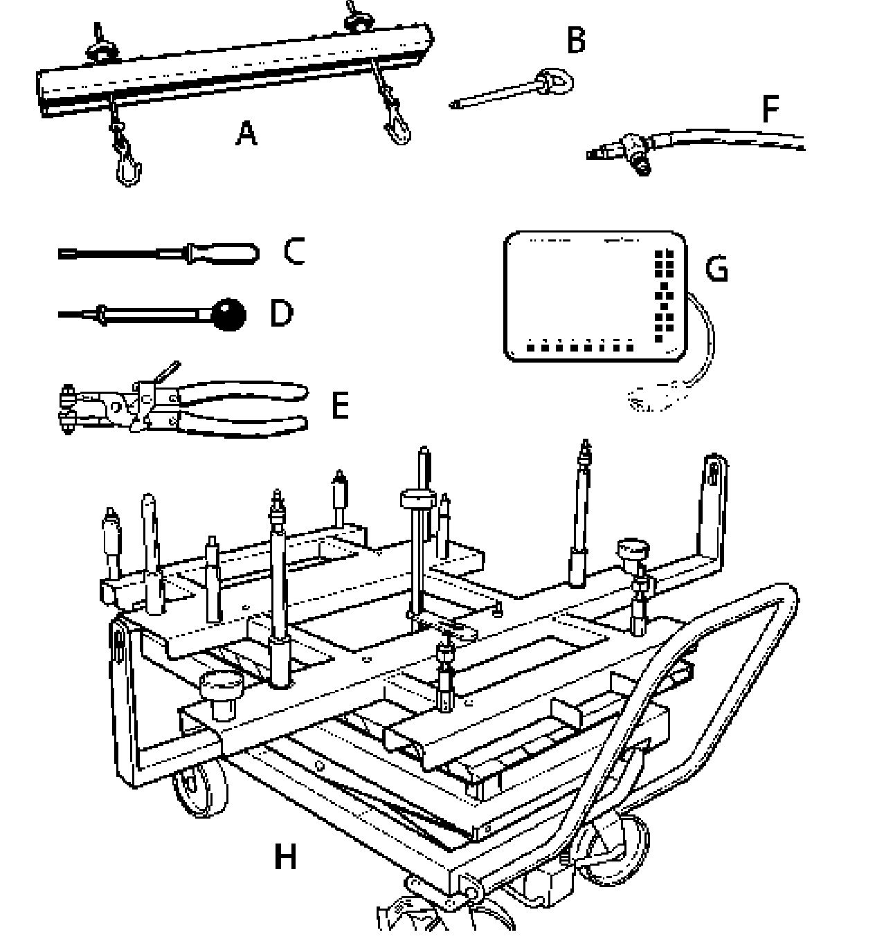 12. Raise the the engine/transmission combination into the body with the lift platform. Ensure sufficient clearance. The insertion guides on the lift truck must fit into the holes in the body.