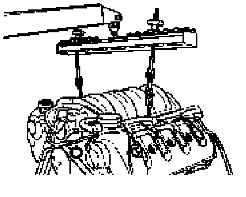 1. Suspend the engine at the mounting points provided on a workshop crane and set down on the suspension subframe.