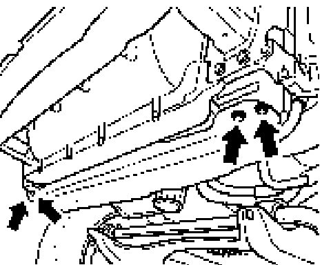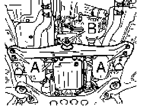 7. Remove the support from under the oil pan and remove the tipping protection from the engine cross member.