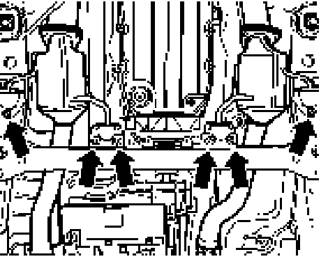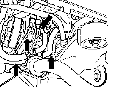 24. Slide the heater coolant lines on the left side member and mount the space-saving clamps.