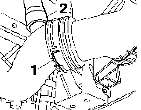 44. On the radiator tank splash panel, tighten carbon canister wire -2- and fuel line -1- to 35 Nm (26 ft. lbs.).