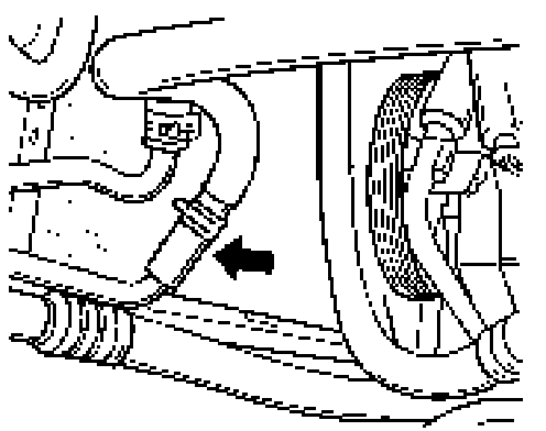 25. Push on the coolant connection piece on the lower left on the radiator. The connection piece must engage audibly.