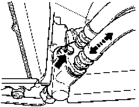 58. Slide the Y pipe onto the throttle adjuster. Then insert the left and right fastening bolts. Turn both bolts 45° clockwise.