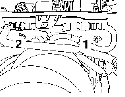 ^ Connect the hose line on the left charge air cooler. Ensure that locking clip -1- is mounted correctly. Connect the lead to ambient air valve -2- and fit the spring band clamp.