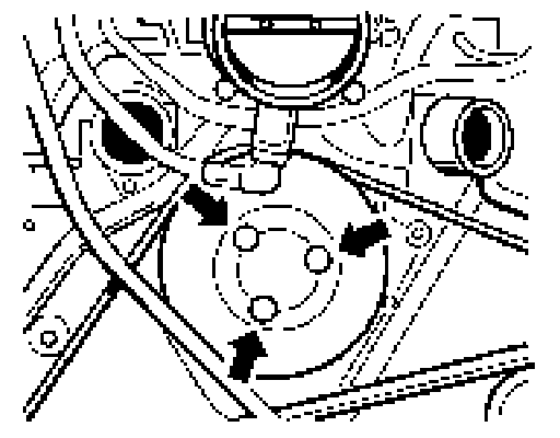 2. Loosen (do not unscrew) the 3 fastening screws of the water pump belt pulley.
