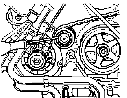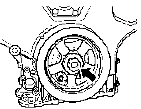 ^ Before the engine is removed, the fastening screws of the water pump belt pulley should be removed.