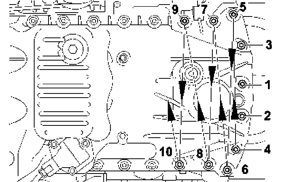 ^ When dismantling the timing case cover, the oil pan has to be resealed every time.