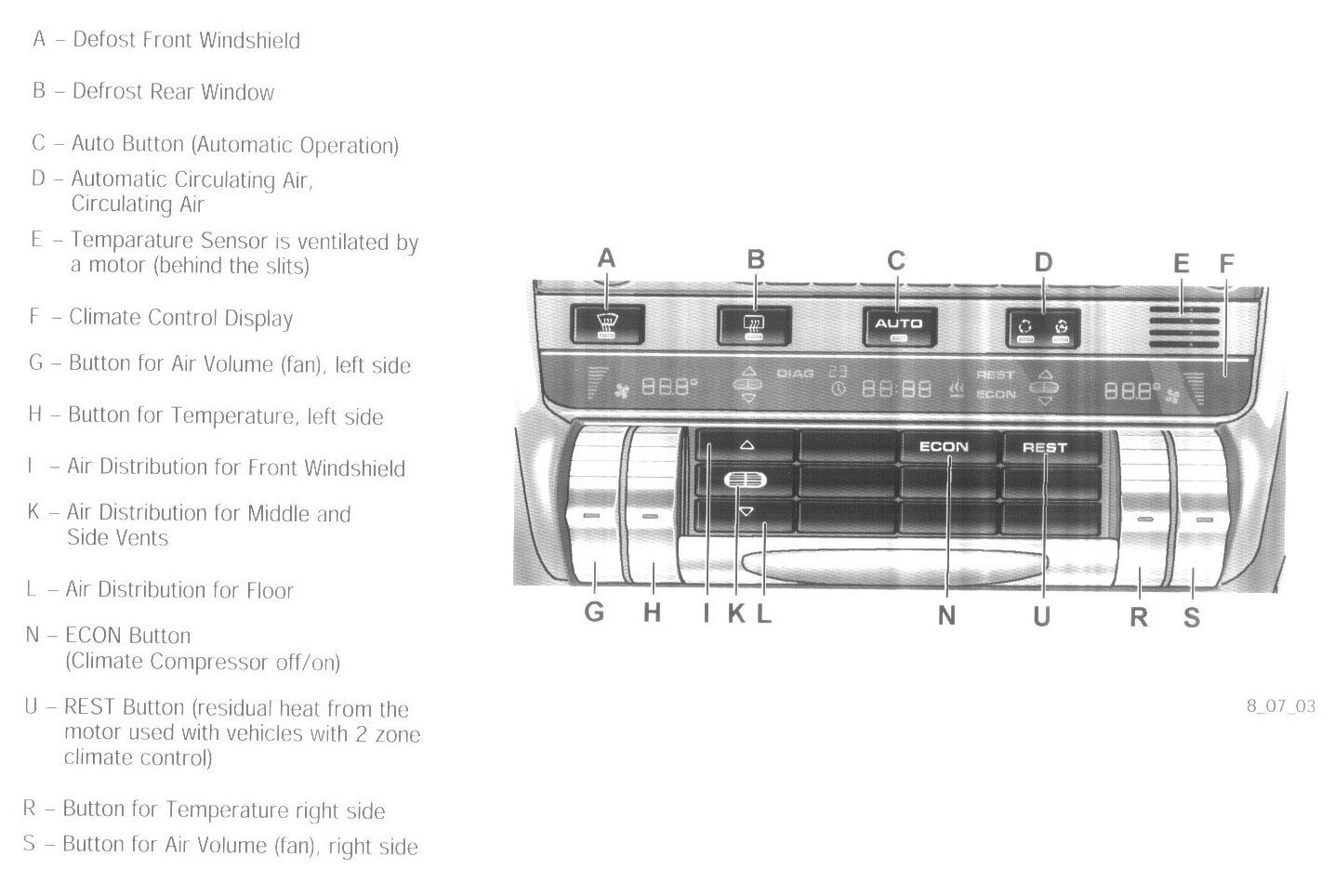 U - REST Button (Residual Heat from the Motor for Vehicles with 2 Zone Climate Control)