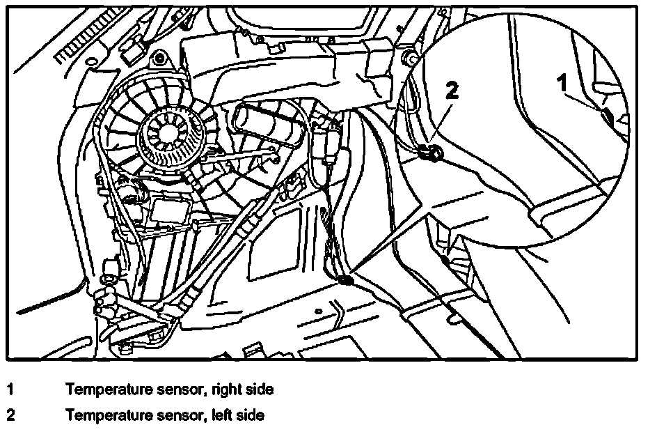 1. Turn the temperature sensor to the inside of the vehicle -arrow A- and remove it from the air duct -arrow B-.