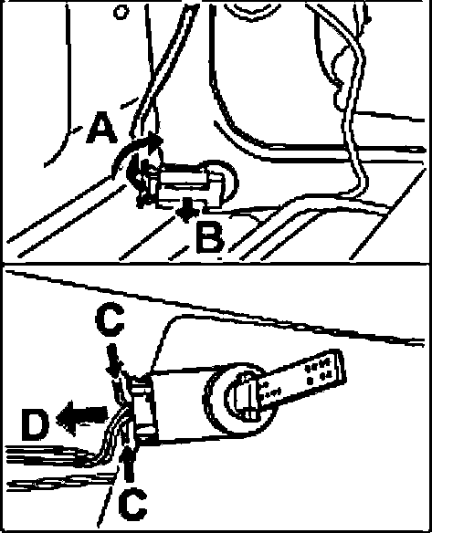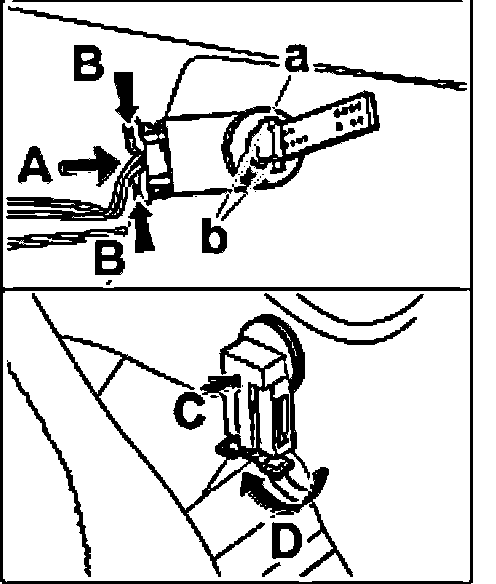 3. Insert temperature sensor -arrow C- and turn it to the inside of the vehicle -arrow D- until the locking tabs -b- engage.