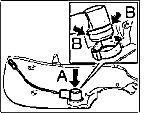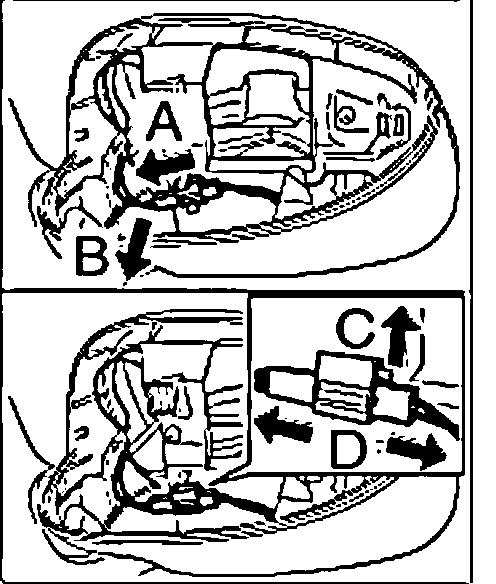 1. Press light into mirror housing "arrow A" until locking tabs "B" are felt to engage.