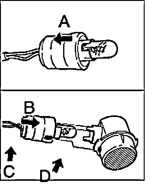 NOTE: When inserting bulb holder, ensure that the marking "C" is opposite the locking tab "D".