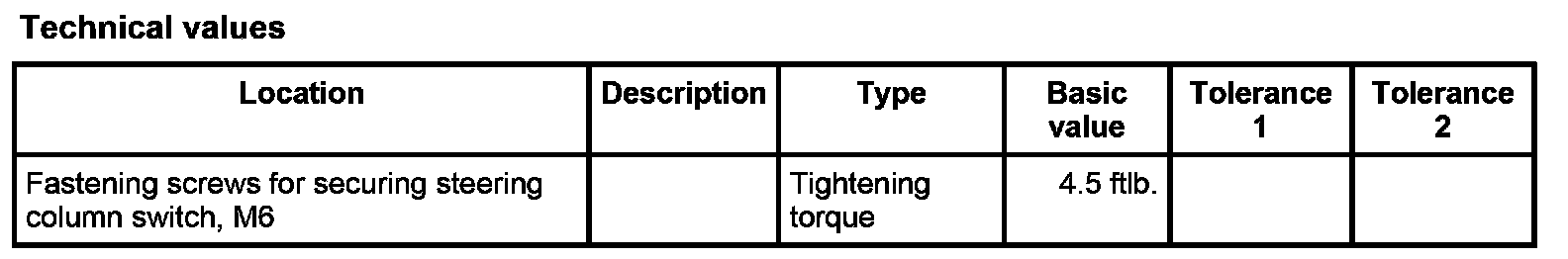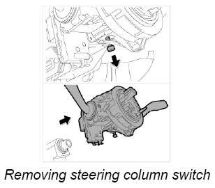 - When removing and installing steering column switch, the steering wheel must be pulled off in the straight-ahead position. This ensures that the airbag contact unit is locked in the central position.
