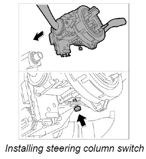 1. Slide steering column switch as far as it will go on to the steering column and secure with fastening screw. - Tightening torque: 4.5 ftlb.