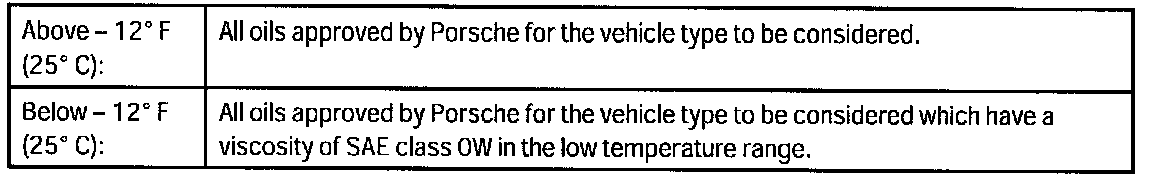 Only non-seasonal light-running oils are now approved by Porsche.