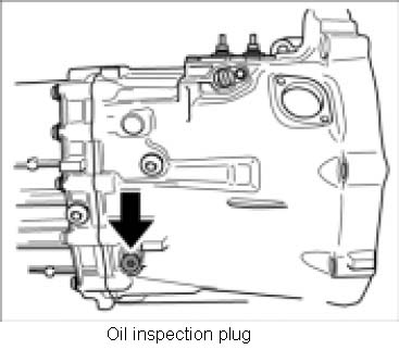 2. Fill in oil using oil filler for ATF up to lower edge of oil inspection plug -arrow-.