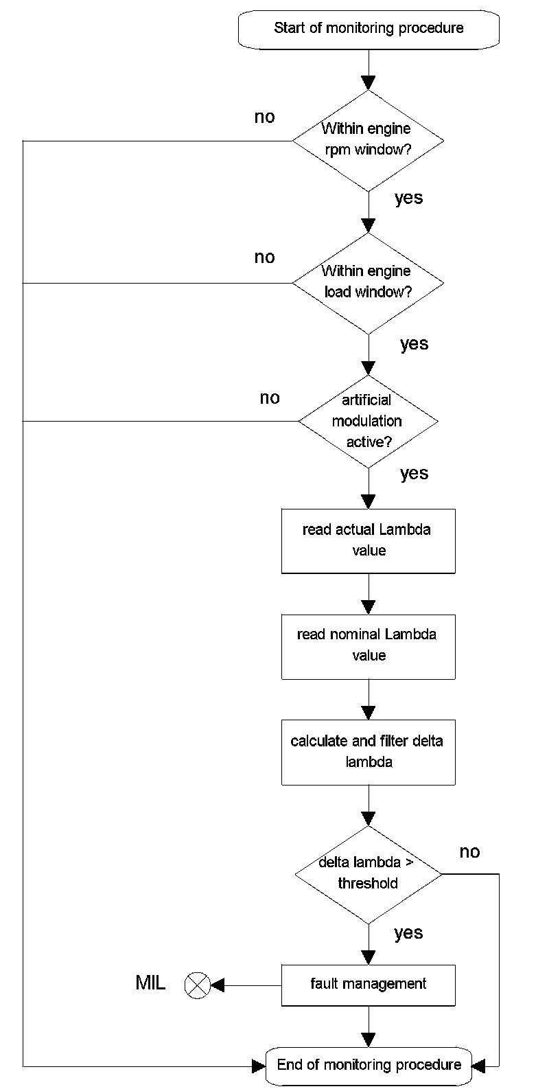 Any change in the dynamic behavior of the Oxygen sensor due to aging, heater fault, wiring brake or contamination will be detected by watching the increase of the Lambda value.
