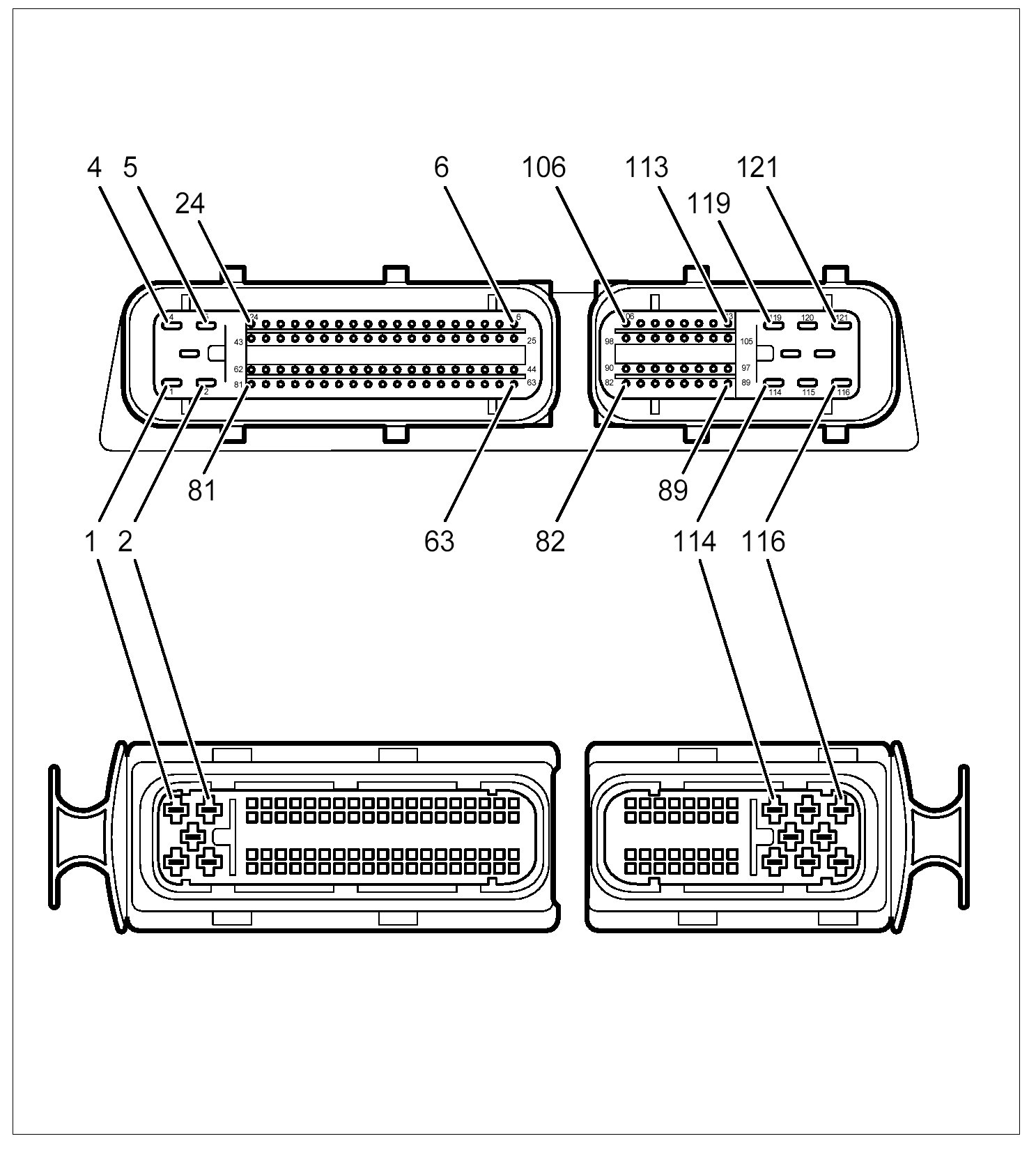 Cayenne V6 Connector A on control module DME 7.1.1 - 81-pole