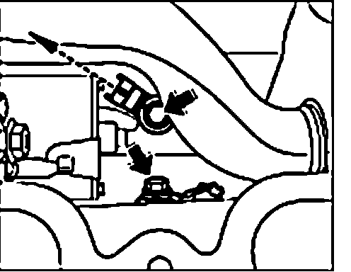 1. Install knock sensor. Ensure that the knock sensors are aligned in accordance with the figures -long arrow shows alignment; short arrow shows fastening screw-.