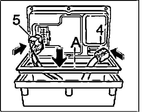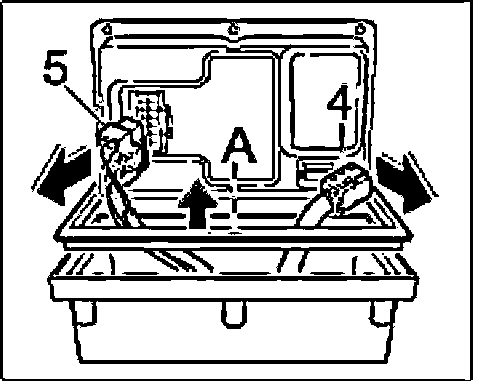 5. First actuate the lock on the connector "5" and remove the connector. Open the clip on the connector "4" and unplug the connector.