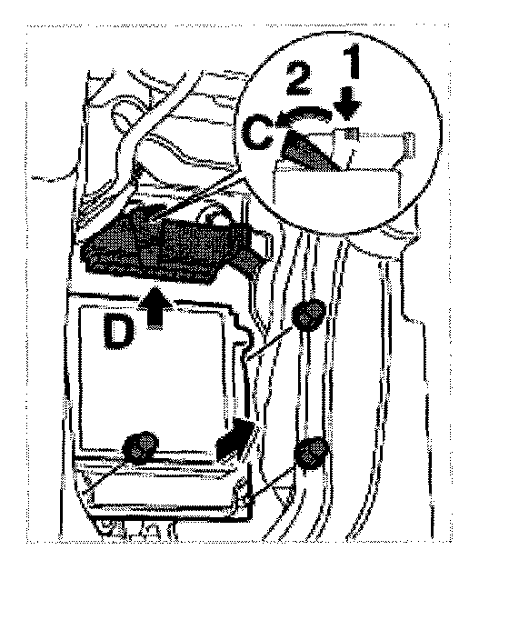 5. -C- Lift up triggering unit, press in plug lock -1- and fold over lever -2-.