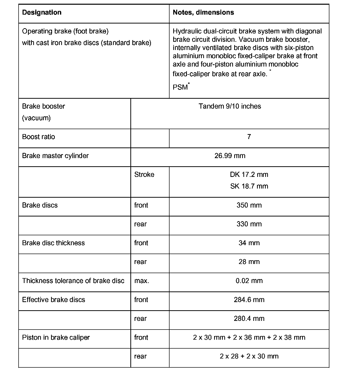 Technical Data/Brake Wear Limits