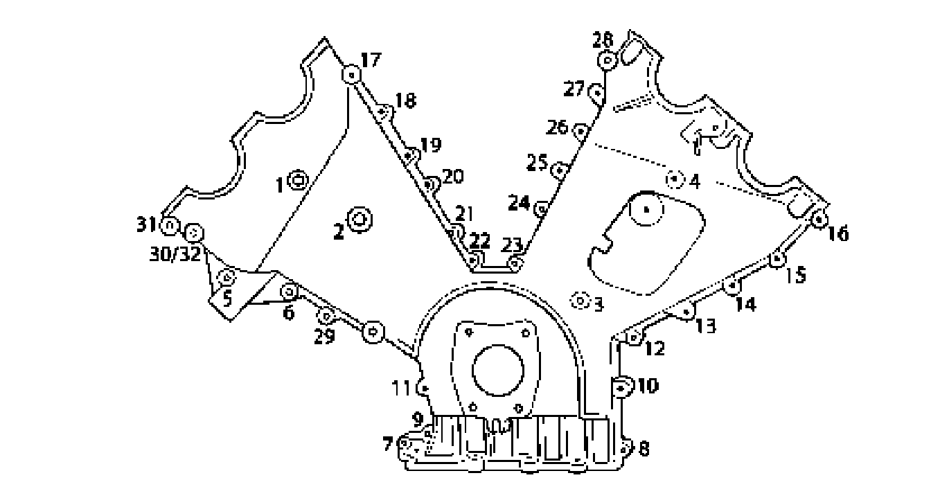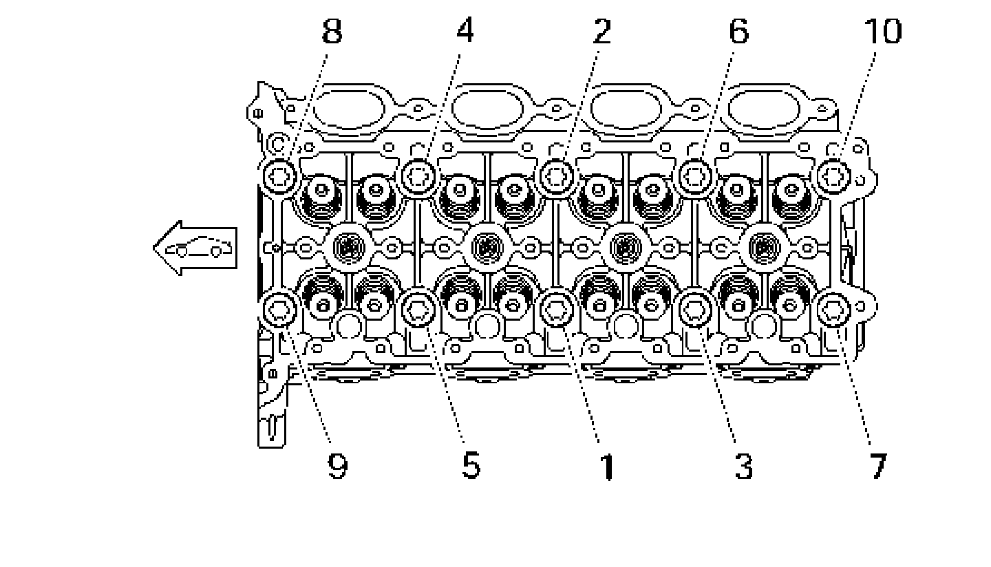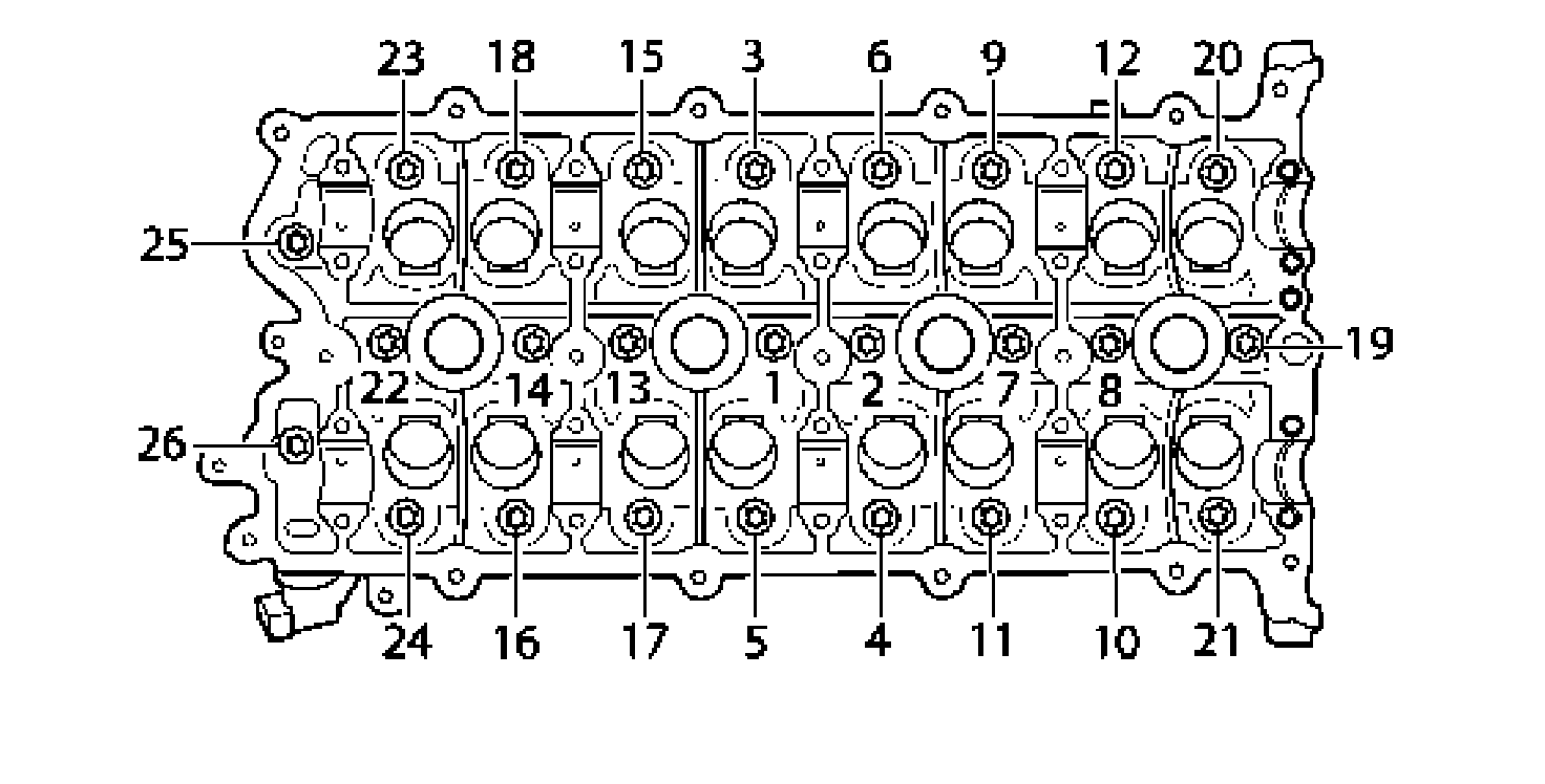 Unscrew 26 camshaft housing fastening screws M8 x 45 contrary to the indicated order and lever camshaft housing off the cylinder head. When removing the camshaft housing, ensure that none of the sealing rings or residual sealant fall into the cylinder head.