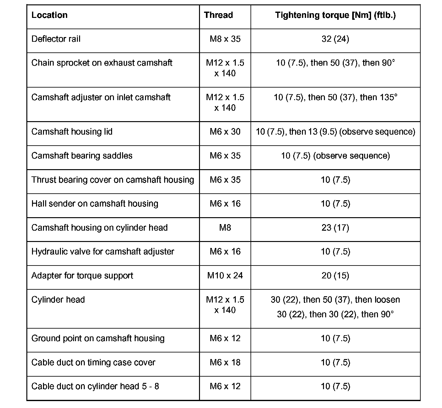 Camshaft bearing sequence