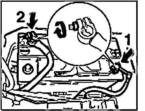 5. Risk of short circuit. First connect the positive cable -1-, then the negative -2-.