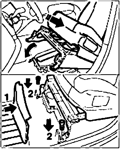 2. Detach the front seat trim -1- towards the front.