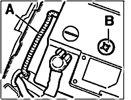 - The charging condition and acid level of the battery can be checked via the inspection glass -B-.